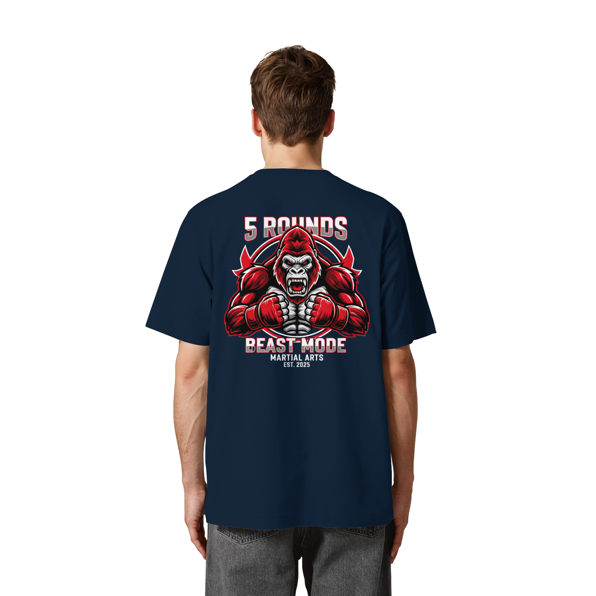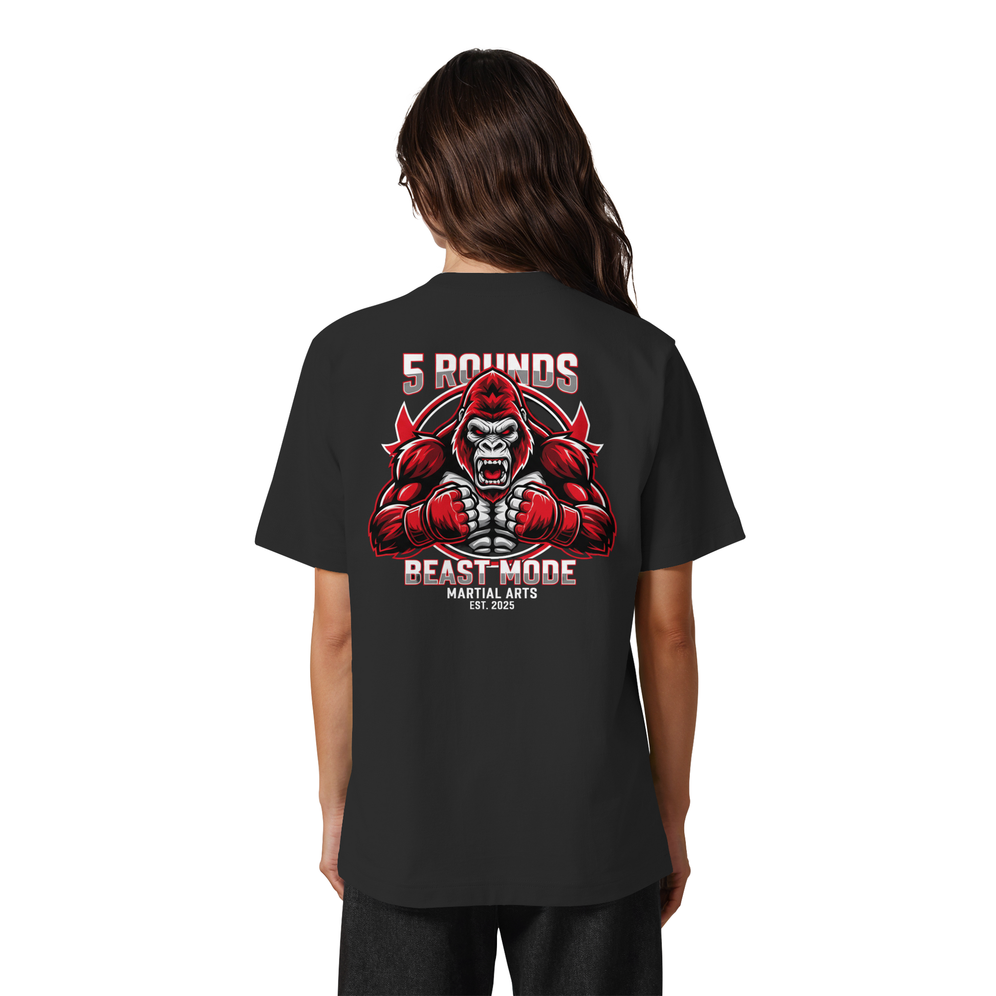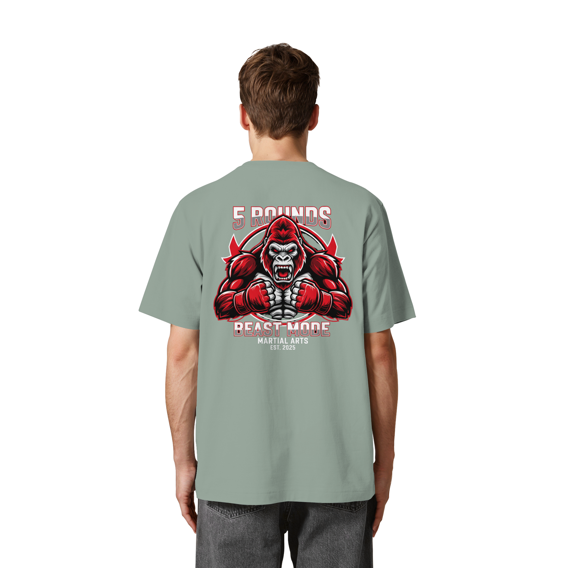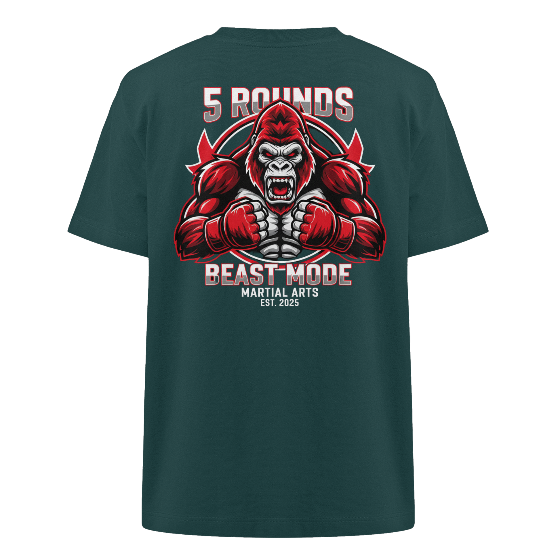 Dieses limitierte Heavy Oversized Organic Shirt vereint Stil und Stärke mit einem kraftvollen BEAST MODE Gorilla-Motiv in Rot, Weiß und Schwarz – kleiner DTF-Druck vorne auf der Brust und großer DTF-Druck auf dem Rücken. Perfekt für diejenigen, die bereit sind, ihre Grenzen zu sprengen! Premium Combat Sports Streetwear aus 100% Bio-Baumwolle für MMA, Kampfsport und Boxing.