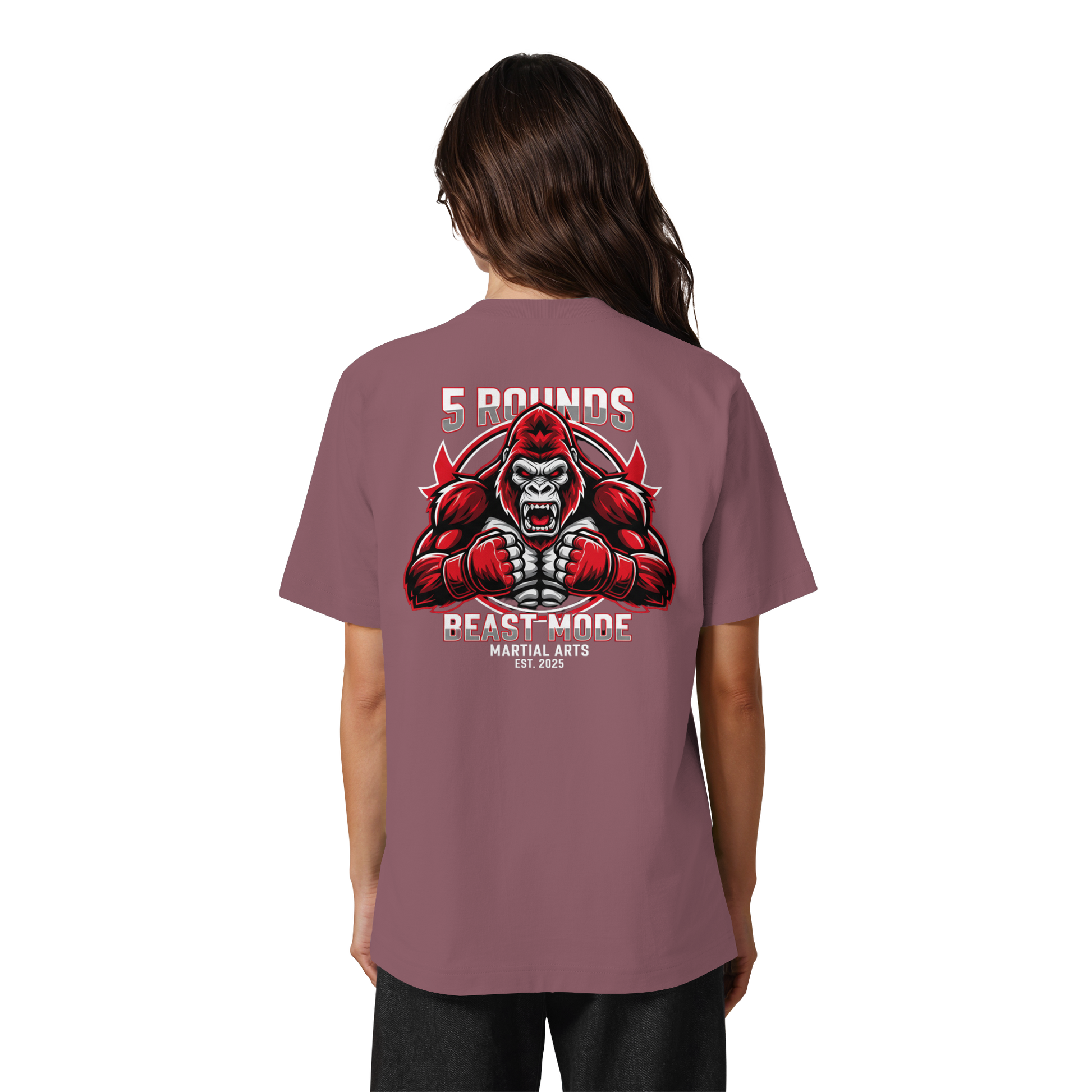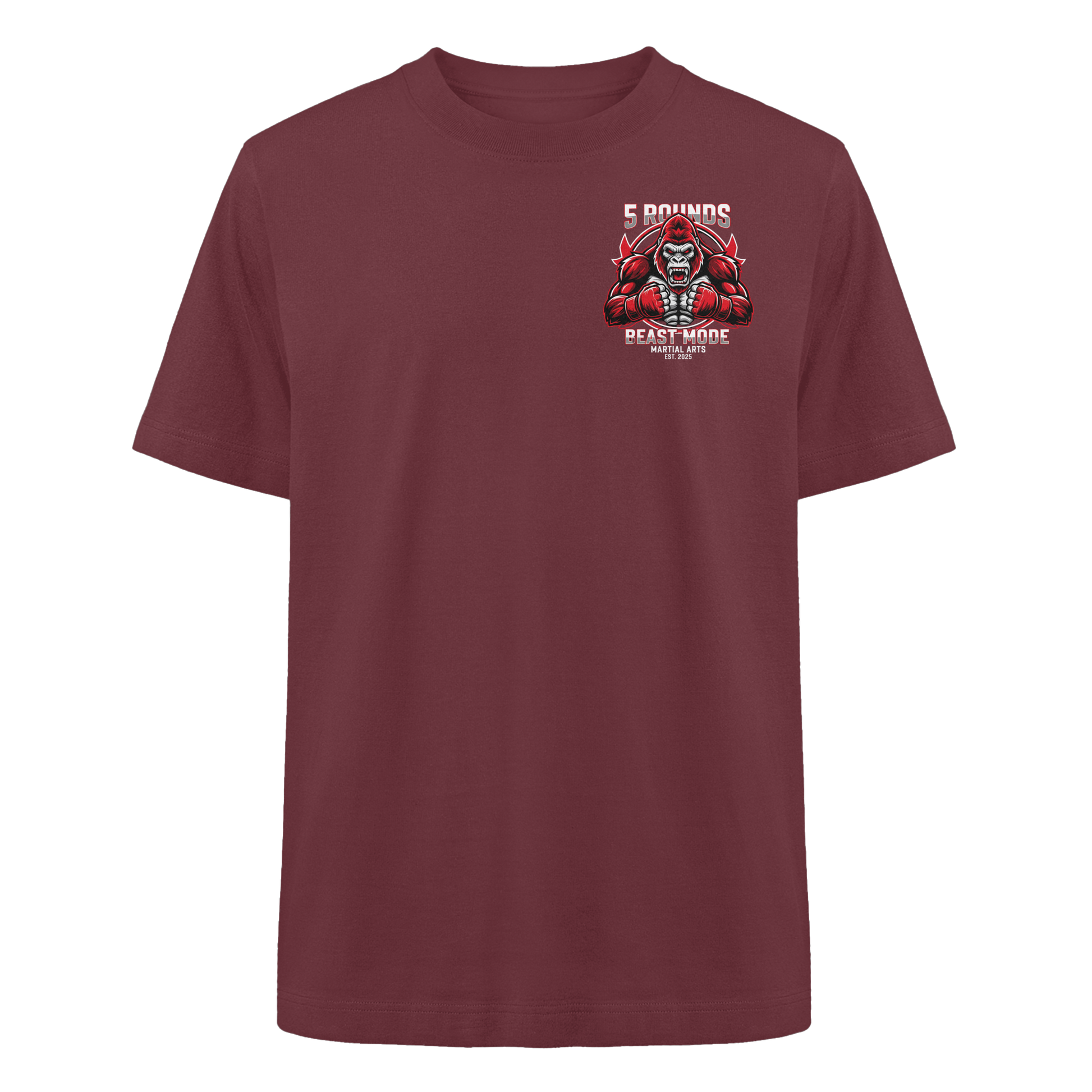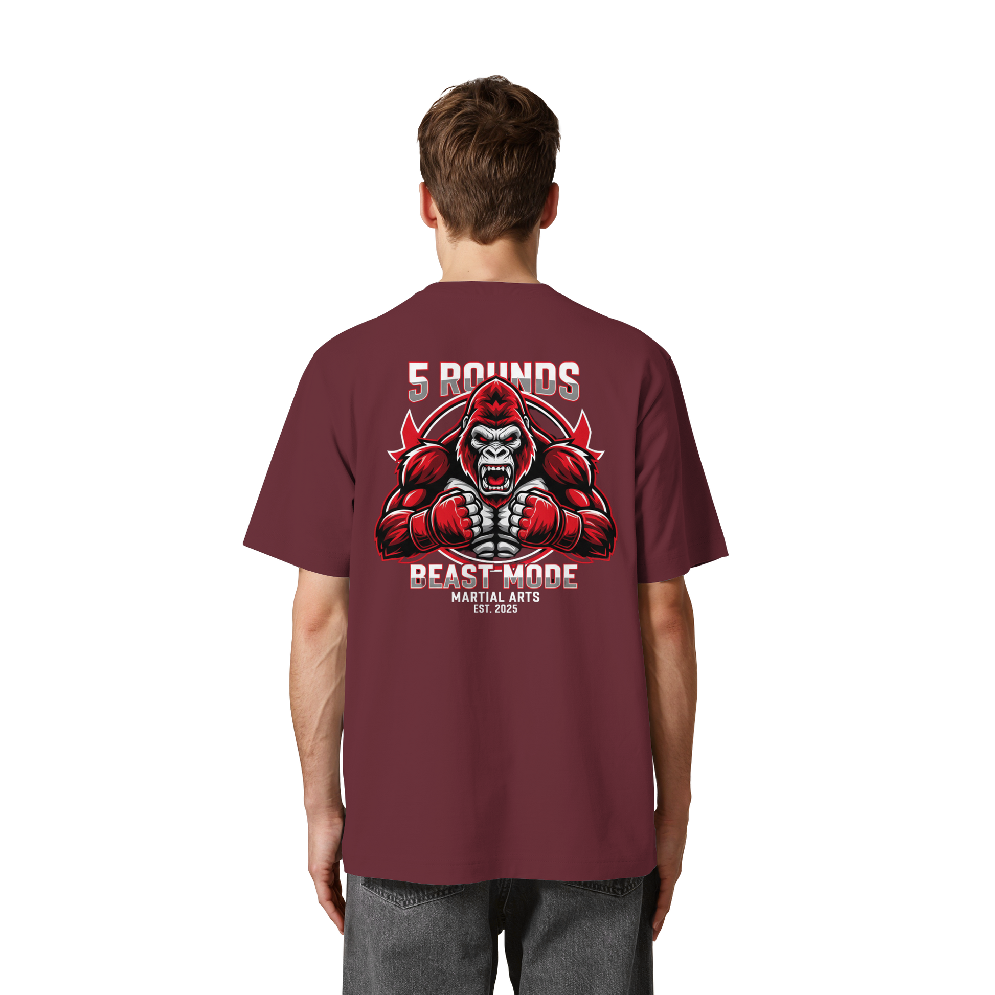 Dieses Premium 5 ROUNDS BEAST MODE Gorilla Heavy Oversized Organic Shirt vereint 100% Bio-Baumwolle mit kraftvollem Design. DTF-Druck vorne klein und hinten groß in Rot, Weiß, Schwarz. DTF ist das beste Druckverfahren für Baumwolle. Erhältlich in 8 Farben: Burgundy, Black, French Navy, Glazed Green, Natural Raw, Kaffa Coffee, Worker Blue, Aloe. Jedes Stück wird individuell hergestellt. Lieferzeit: 5-7 Werktage. Ideal für MMA, Kampfsport und Combat Sports Streetwear.