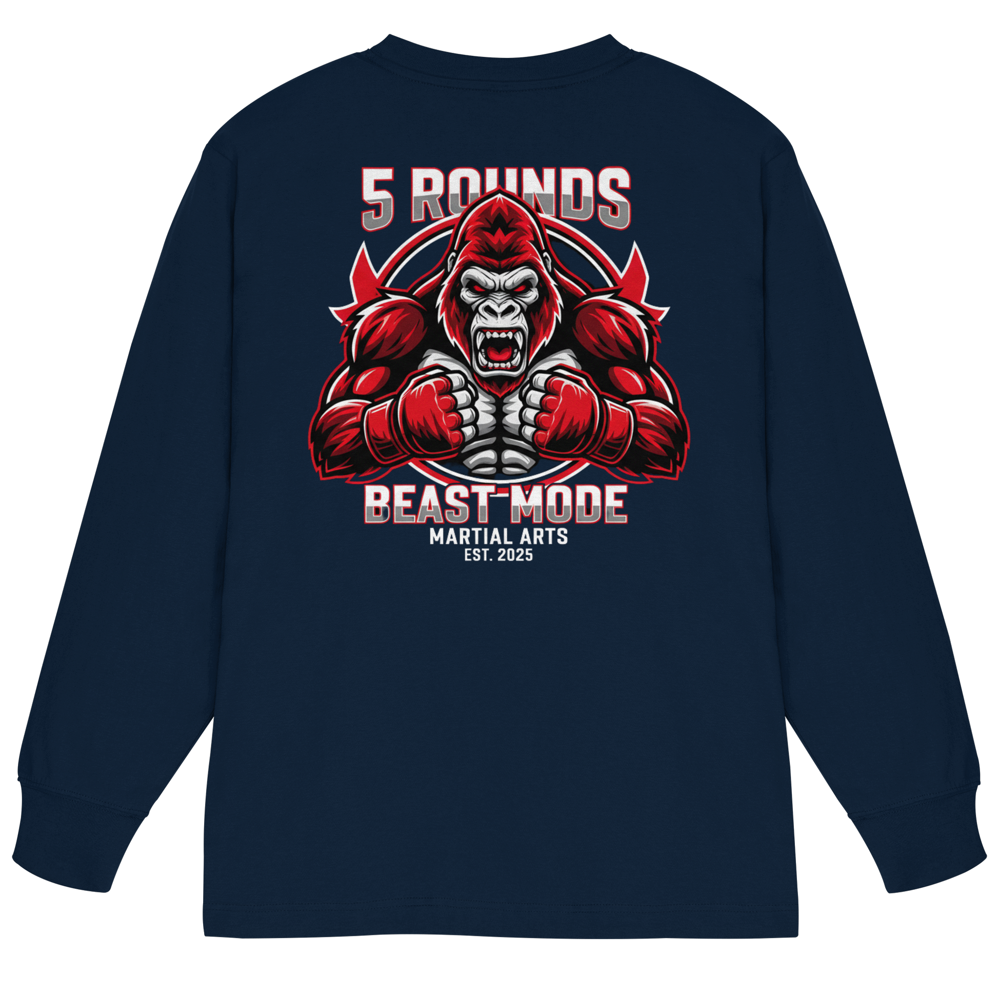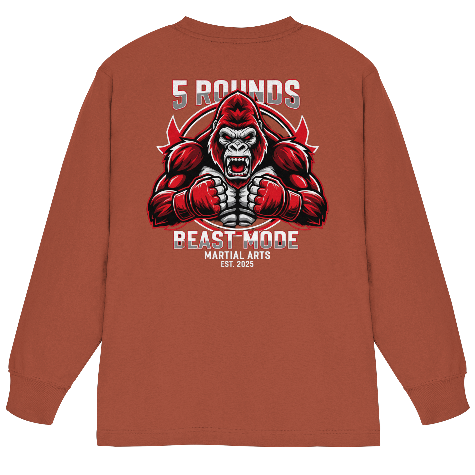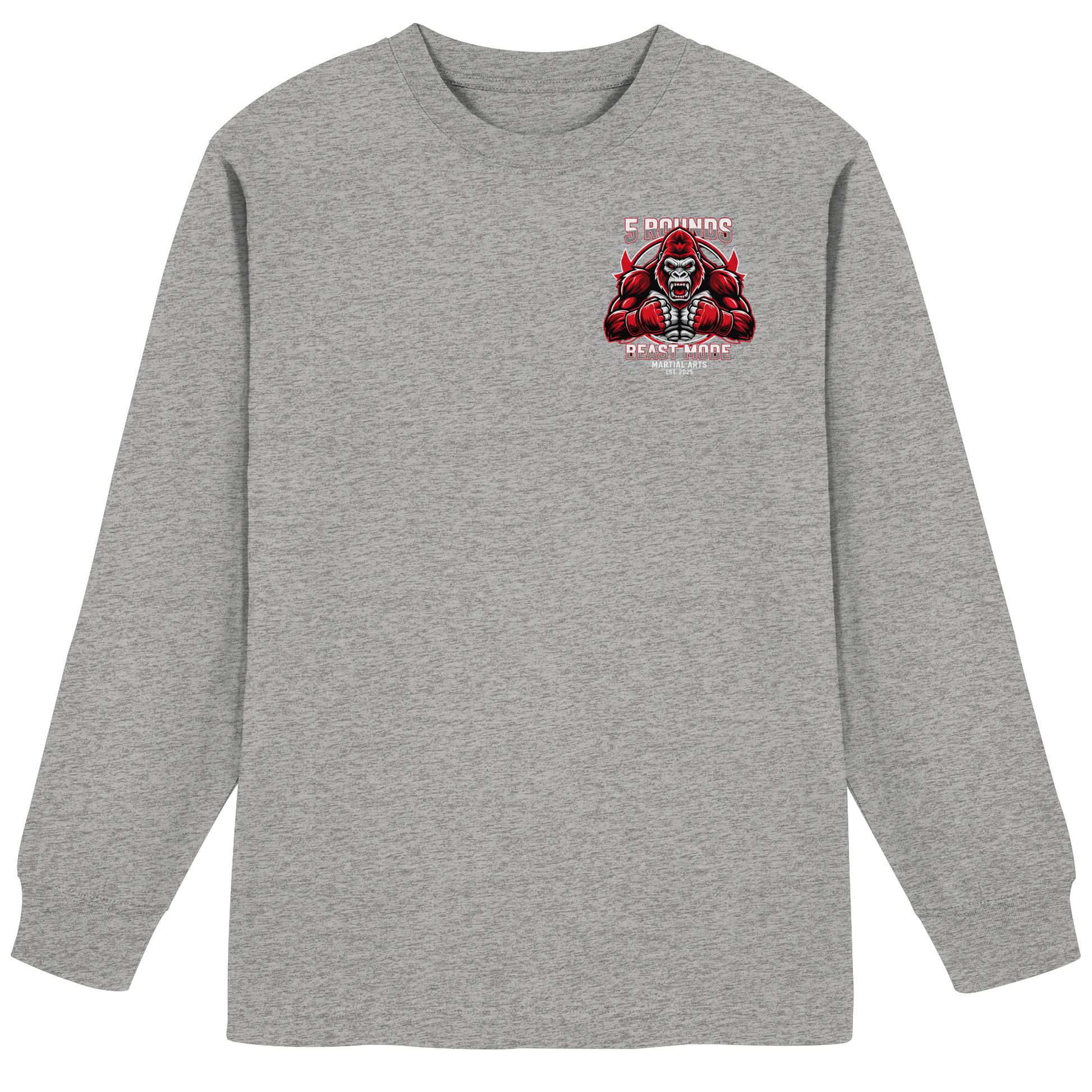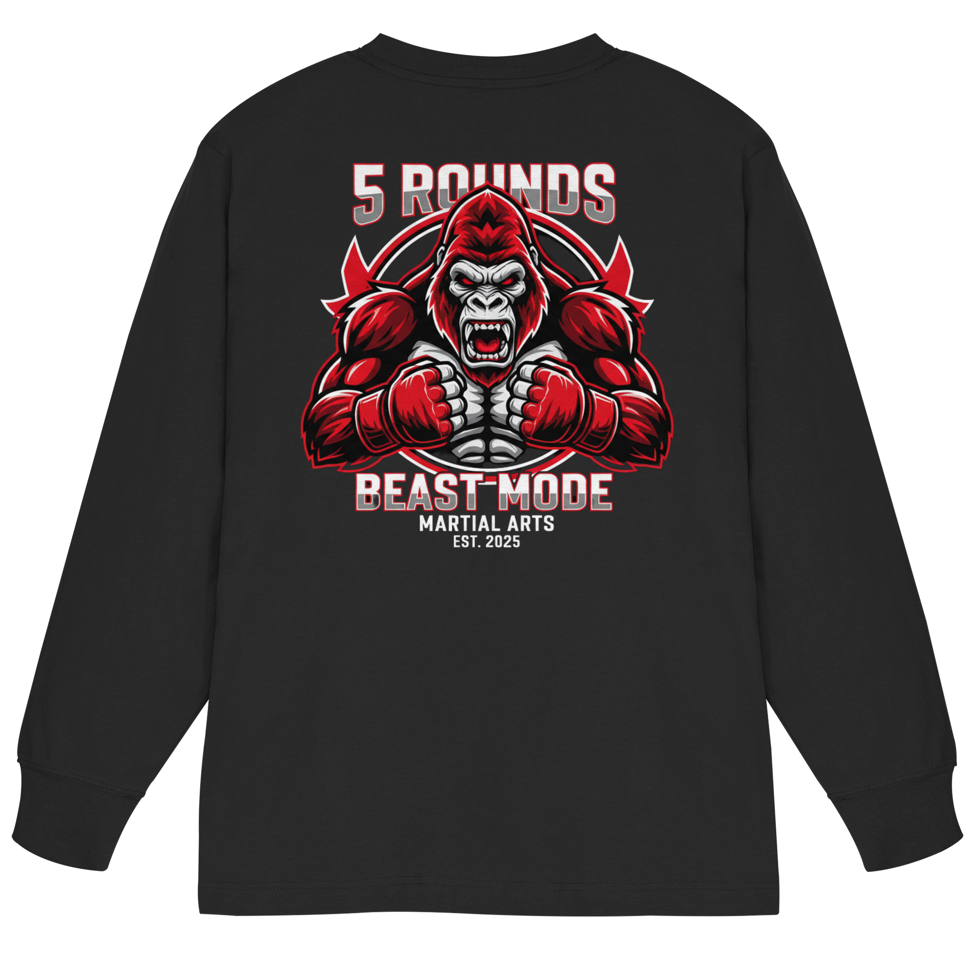 Jedes 5 ROUNDS BEAST MODE Longsleeve wird individuell für dich hergestellt – mit hochwertigem DTF-Druck. Lieferzeit: 5-7 Werktage.