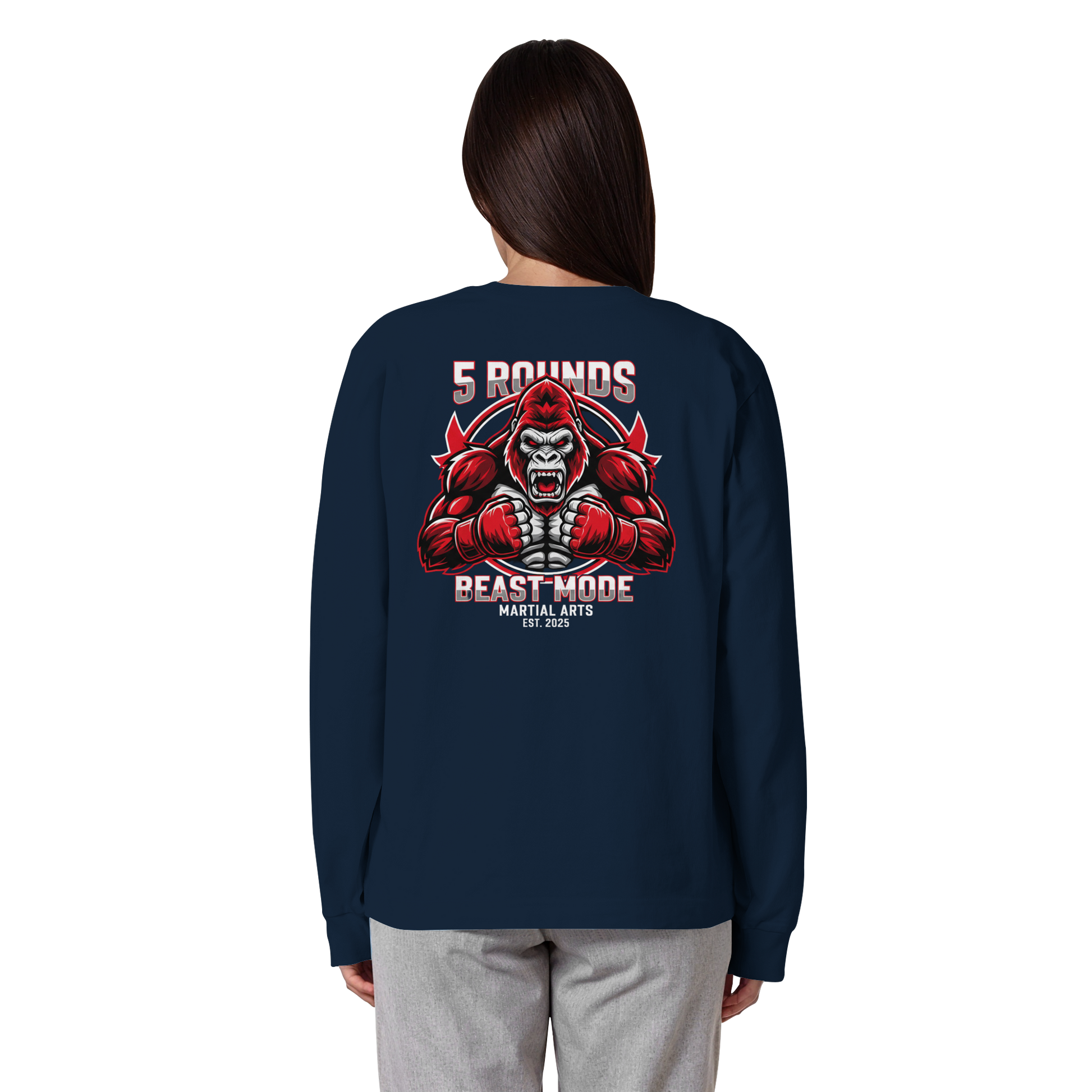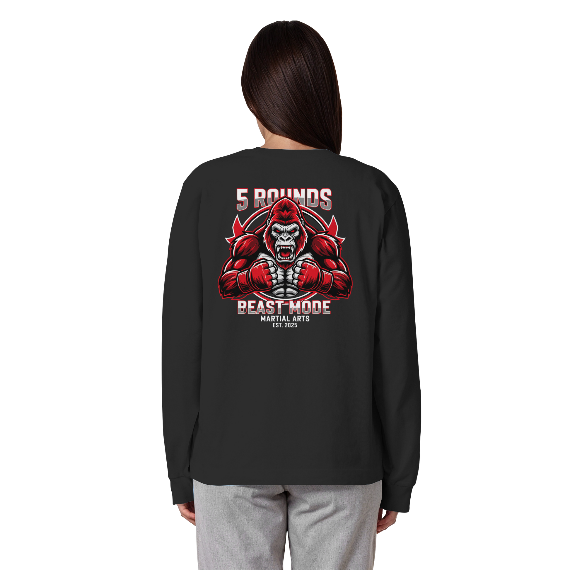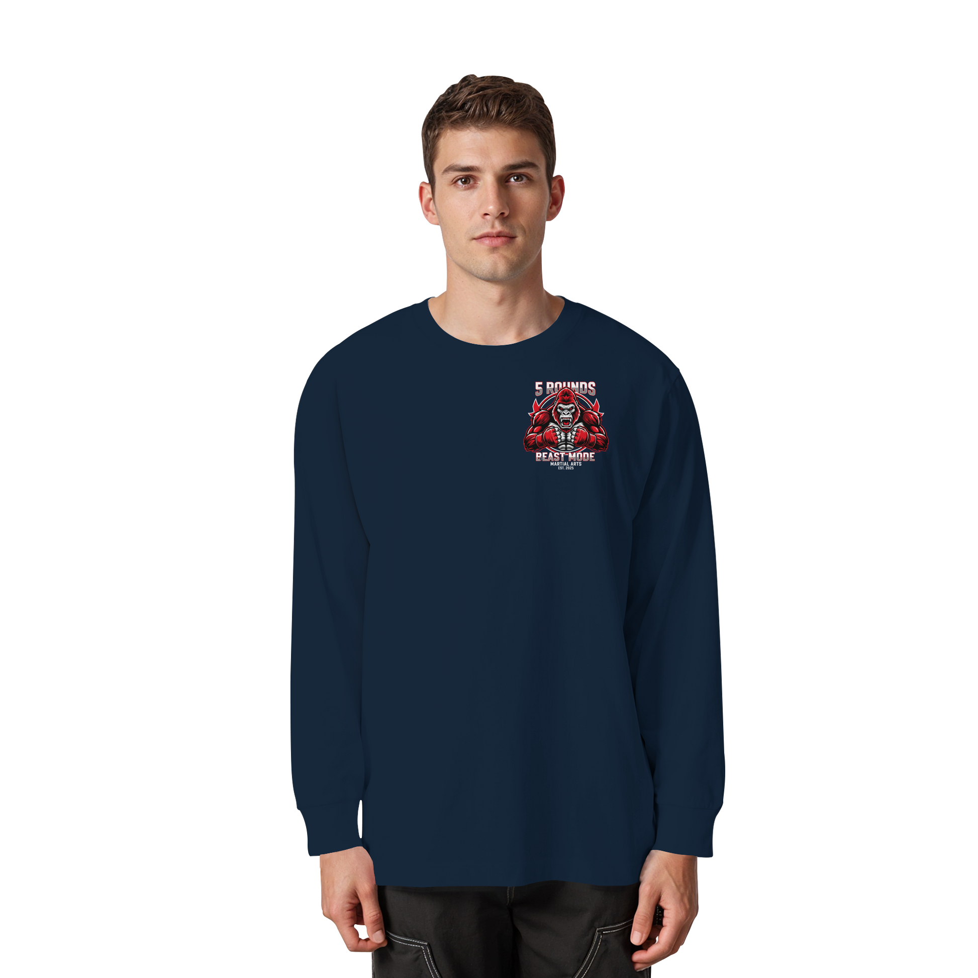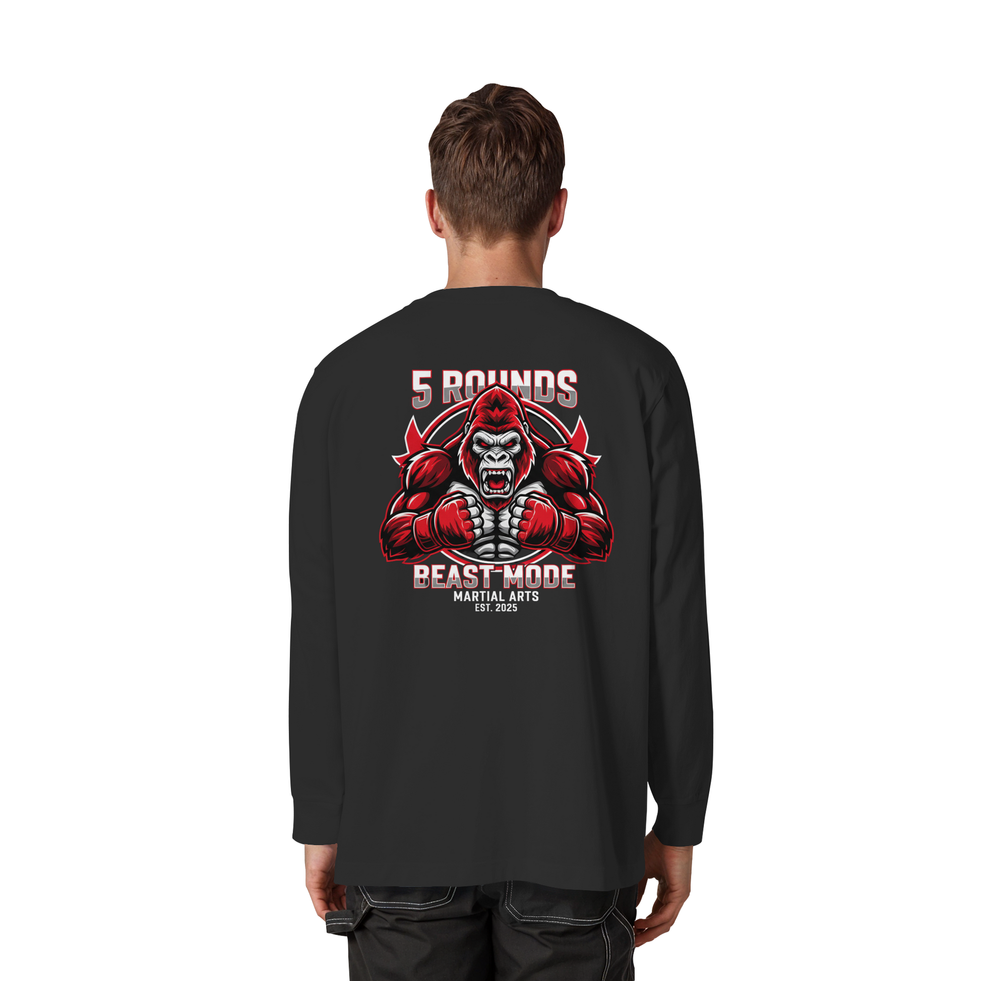 Jedes 5 ROUNDS BEAST MODE Longsleeve wird individuell für dich hergestellt – mit hochwertigem DTF-Druck. Lieferzeit: 5-7 Werktage.
