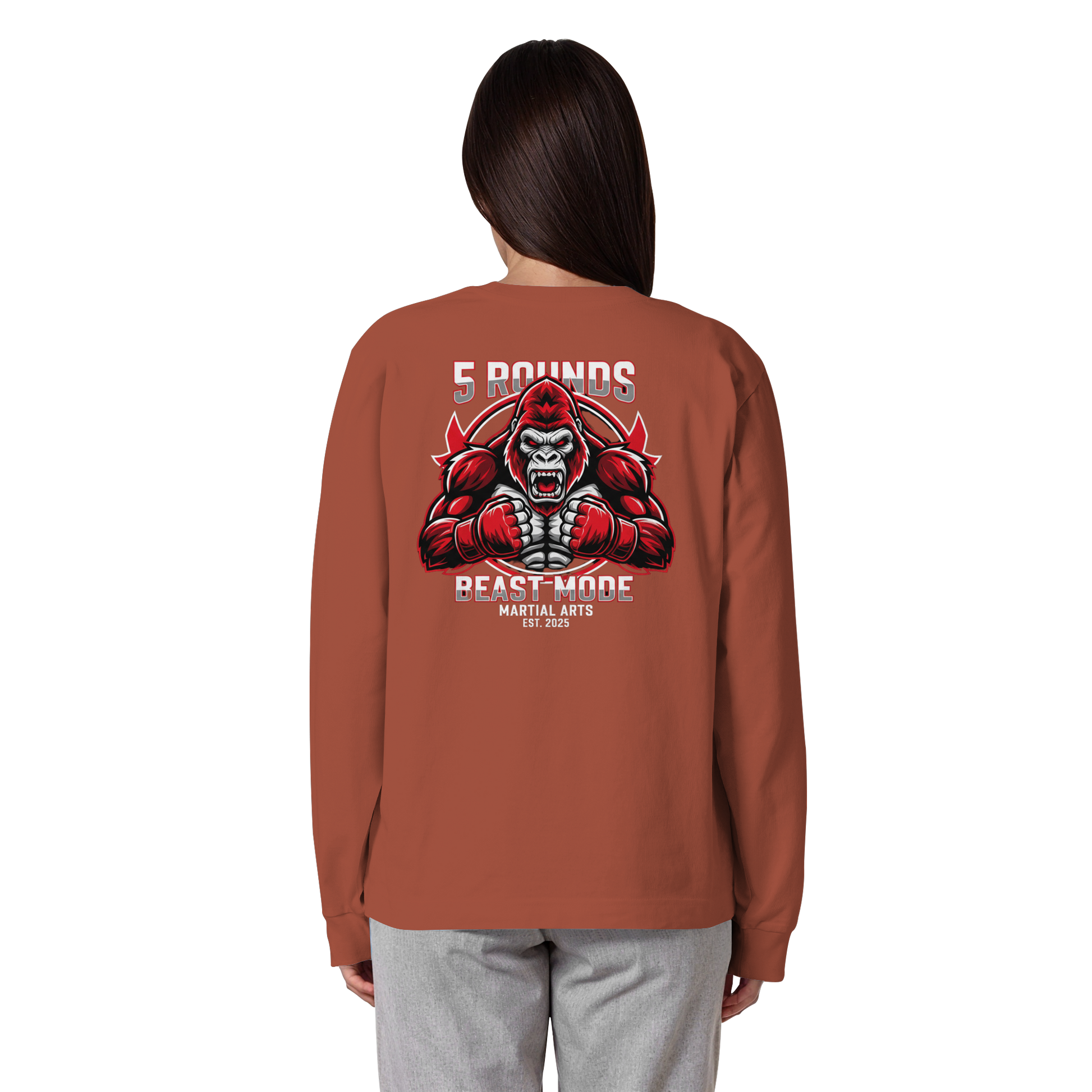Dieses Premium 5 ROUNDS BEAST MODE Gorilla Organic Heavy Oversized Longsleeve vereint 100% Bio-Baumwolle mit kraftvollem Design. DTF-Druck vorne klein und hinten groß in Rot, Weiß, Schwarz. DTF ist das beste Druckverfahren für Baumwolle. Relaxed Oversized Fit. Jedes Stück wird individuell hergestellt. Lieferzeit: 5-7 Werktage. Ideal für MMA, Kampfsport und Combat Sports Streetwear.