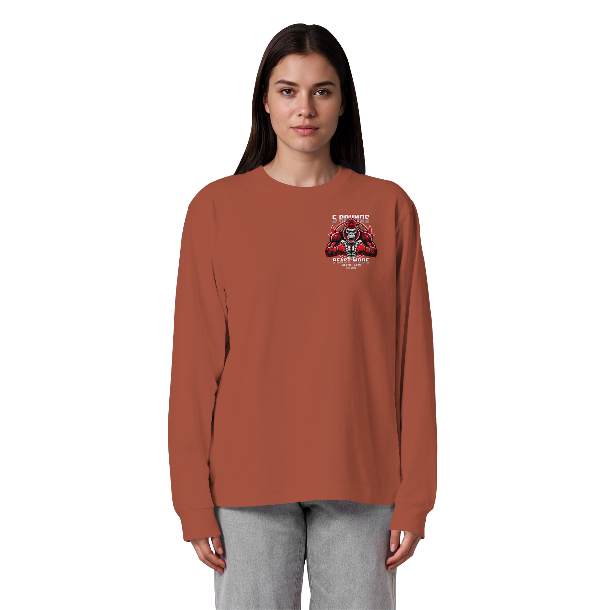 Erwecke das Biest in dir! Entfessle deine innere Stärke mit dem 5 ROUNDS BEAST MODE Gorilla Organic Heavy Oversized Longsleeve. Ein Design, das Entschlossenheit und Kraft ausstrahlt. Premium Combat Sports Streetwear aus 100% Bio-Baumwolle für MMA, Kampfsport und Boxing.