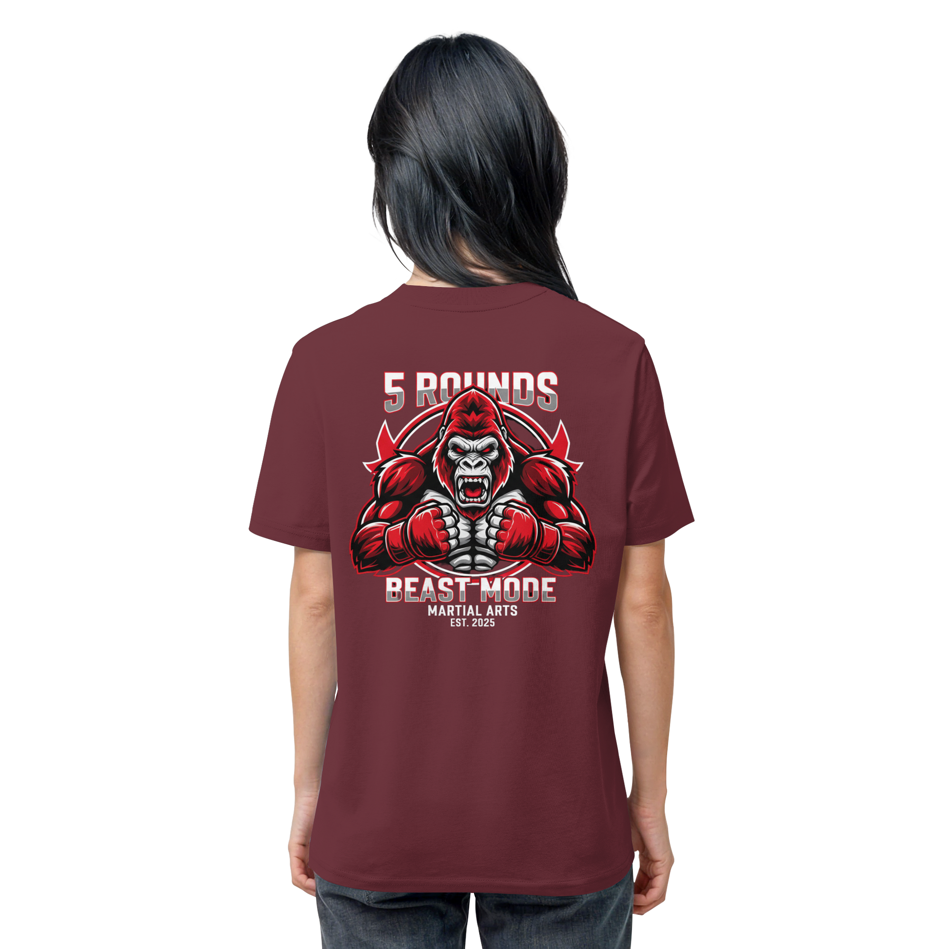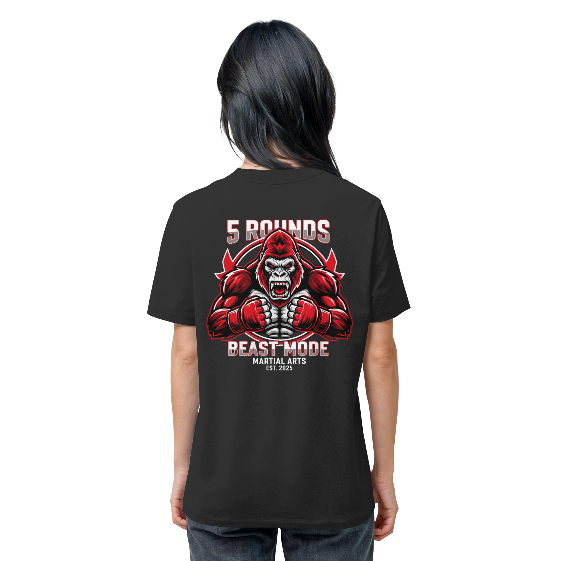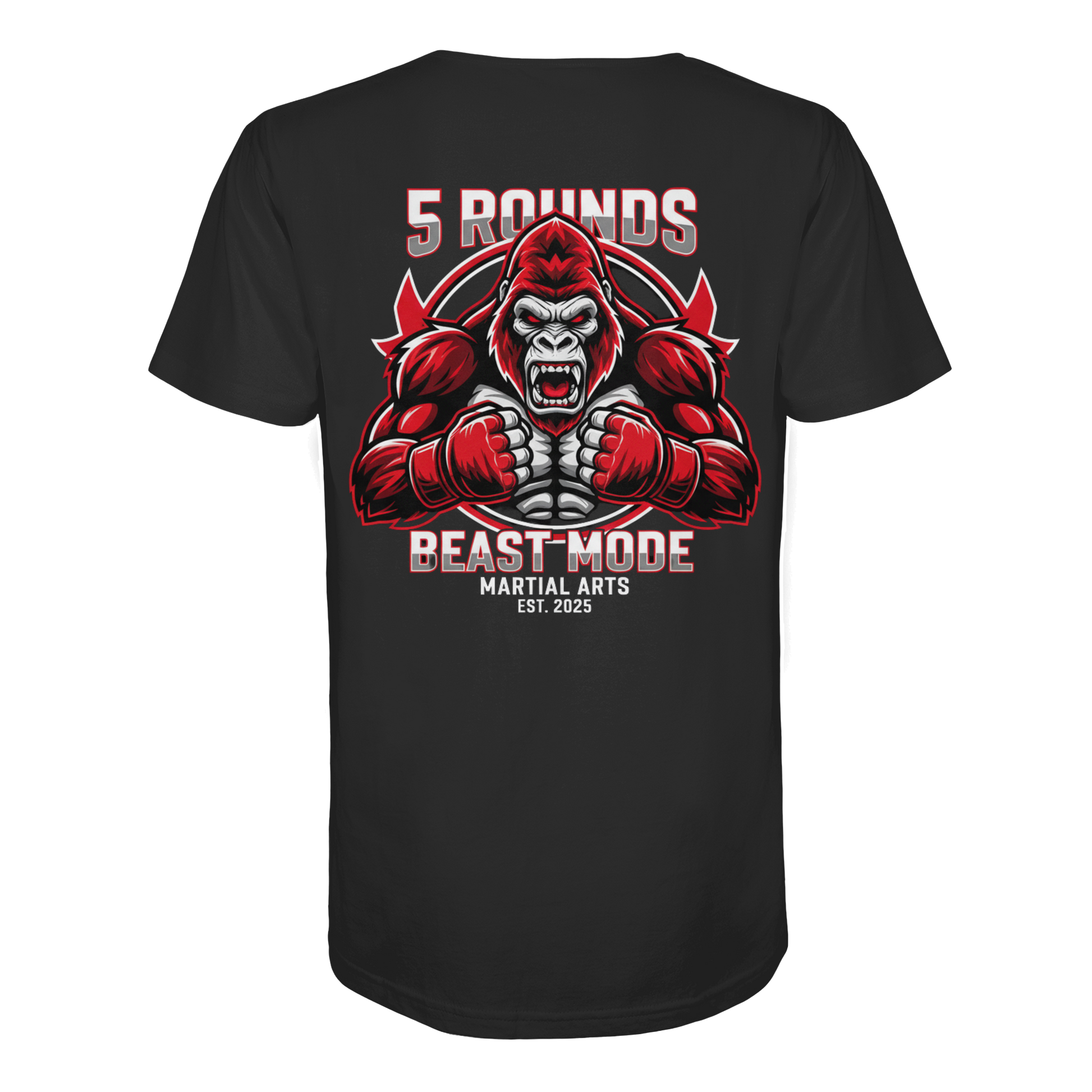 Das kraftvolle BEAST MODE Gorilla-Motiv in Rot, Weiß und Schwarz auf dem Rücken inspiriert dich, in jeder Situation dein Bestes zu geben. Die harmonische Farbkombination unterstreicht deine Entschlossenheit und deinen Stil. Perfekt für Kämpfer und Combat Sports Streetwear Fans!