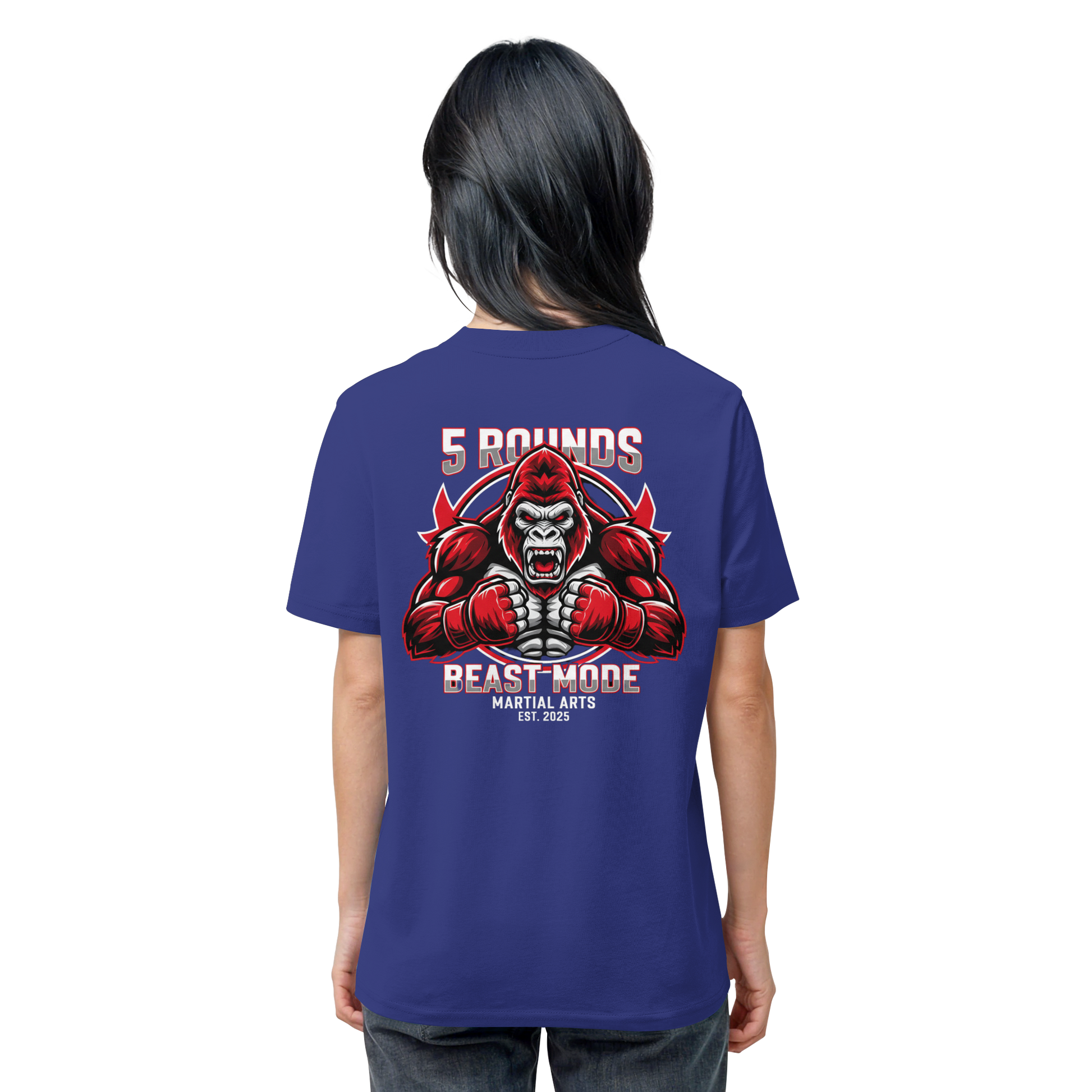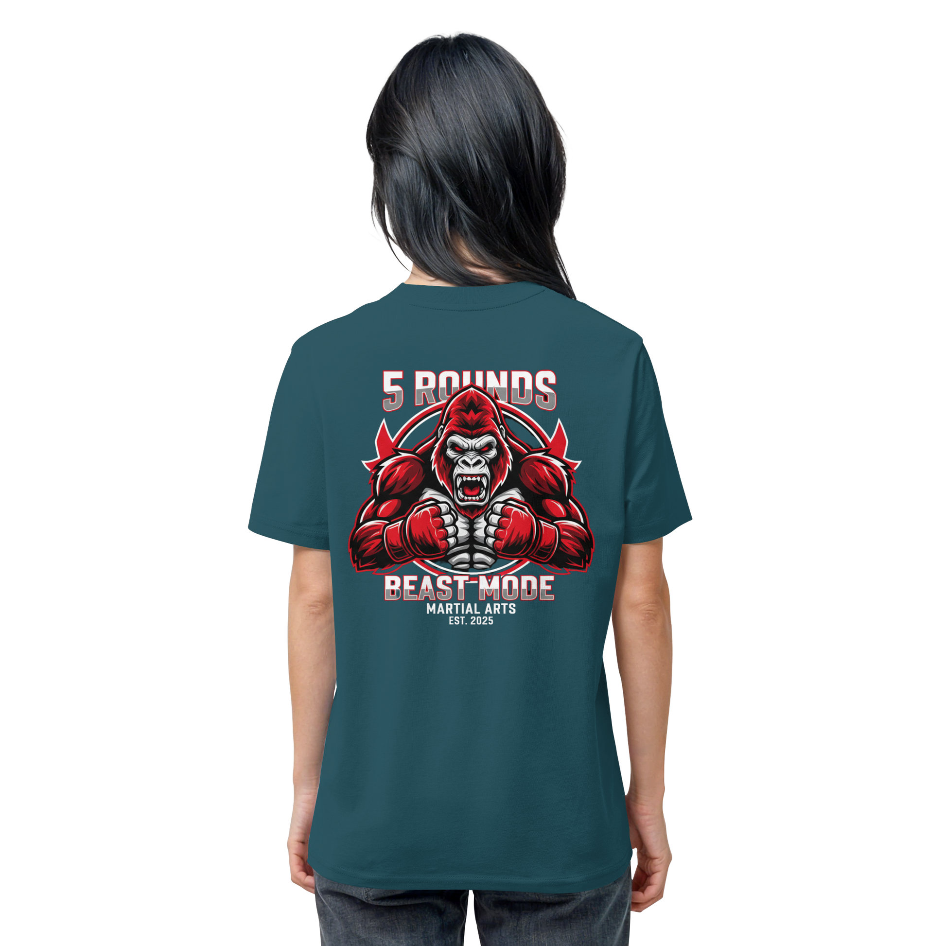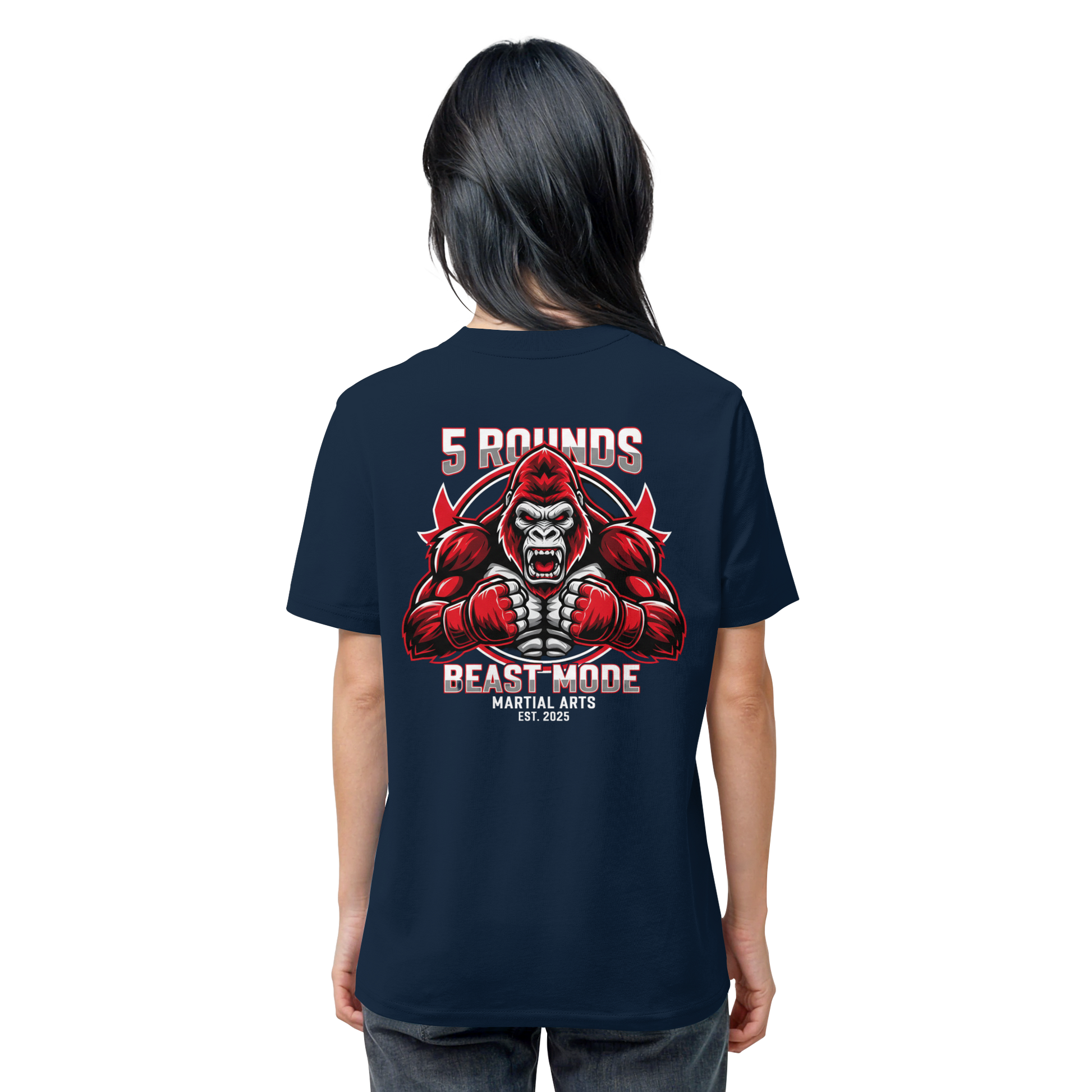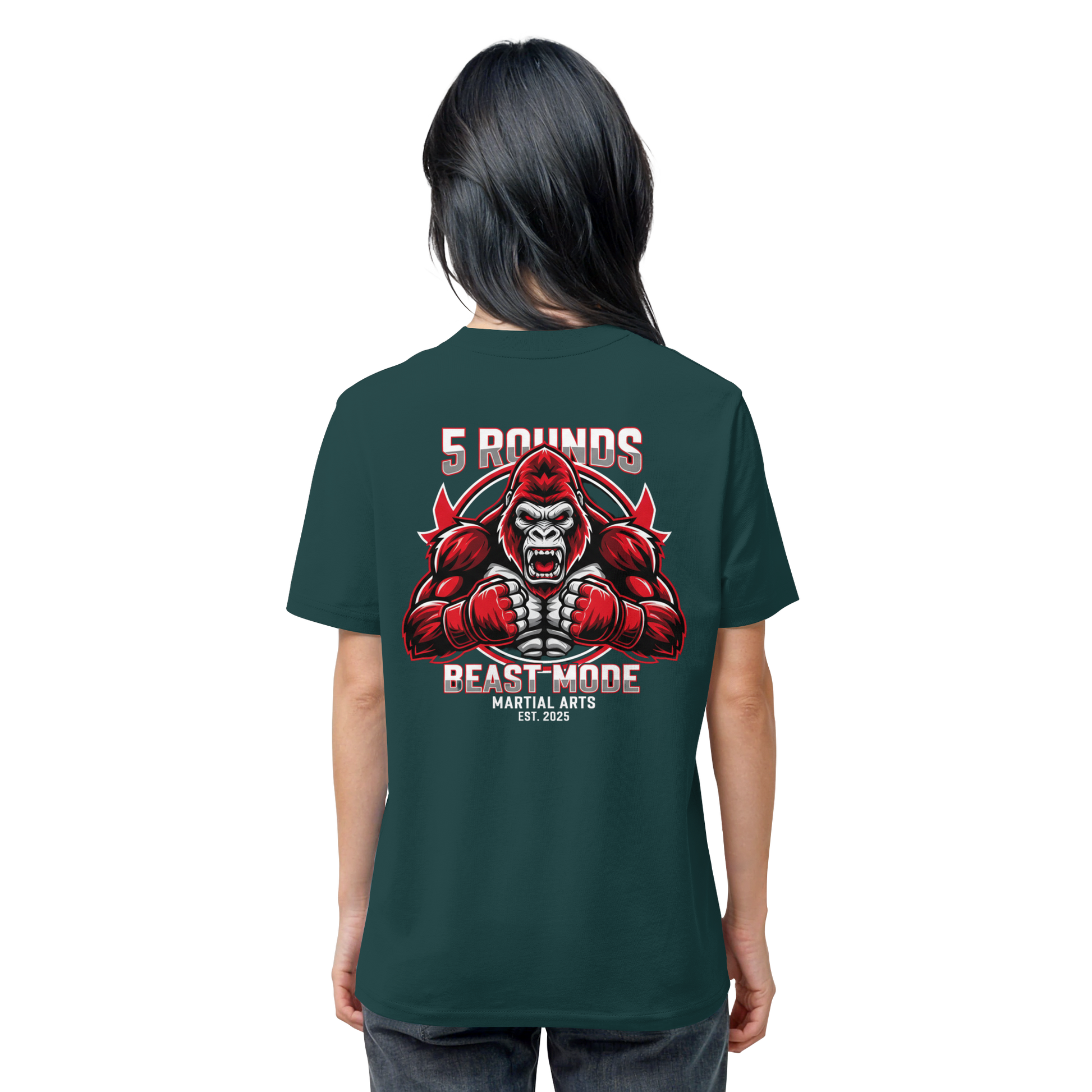 Das kraftvolle BEAST MODE Gorilla-Motiv in Rot, Weiß und Schwarz auf dem Rücken inspiriert dich, in jeder Situation dein Bestes zu geben. Die harmonische Farbkombination unterstreicht deine Entschlossenheit und deinen Stil. Perfekt für Kämpfer und Combat Sports Streetwear Fans!