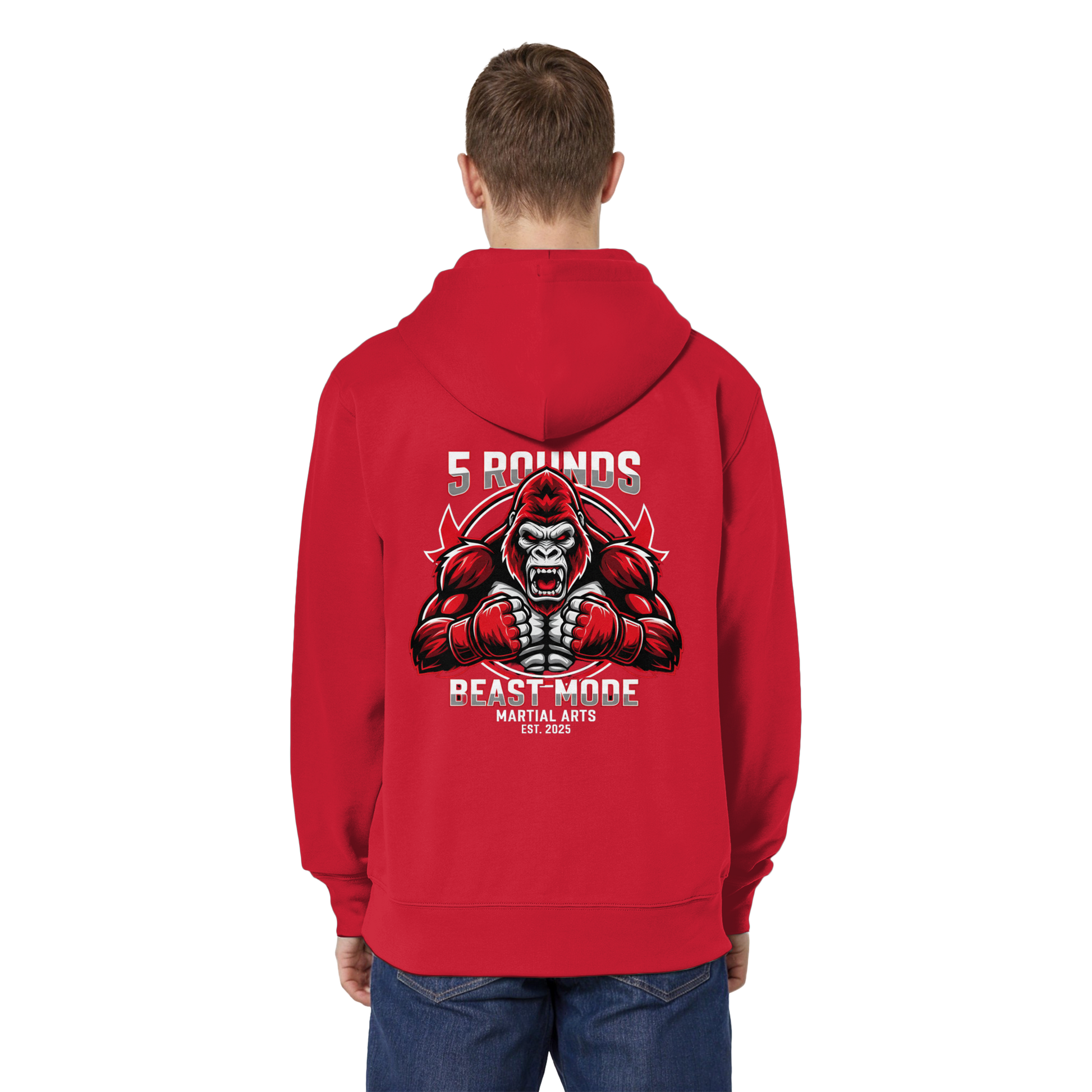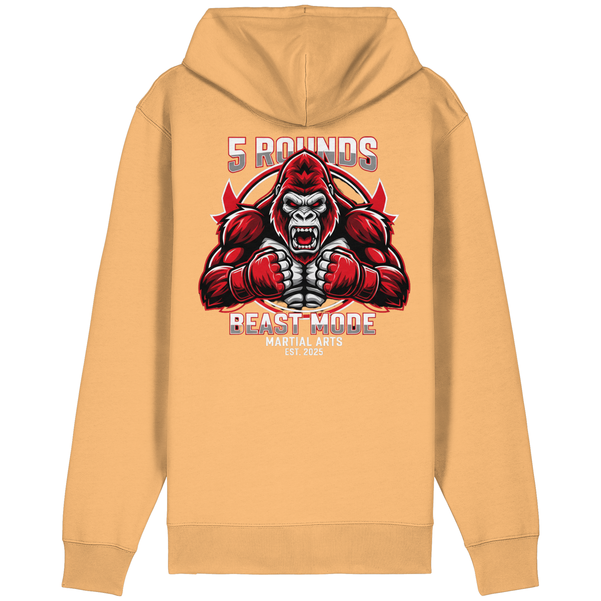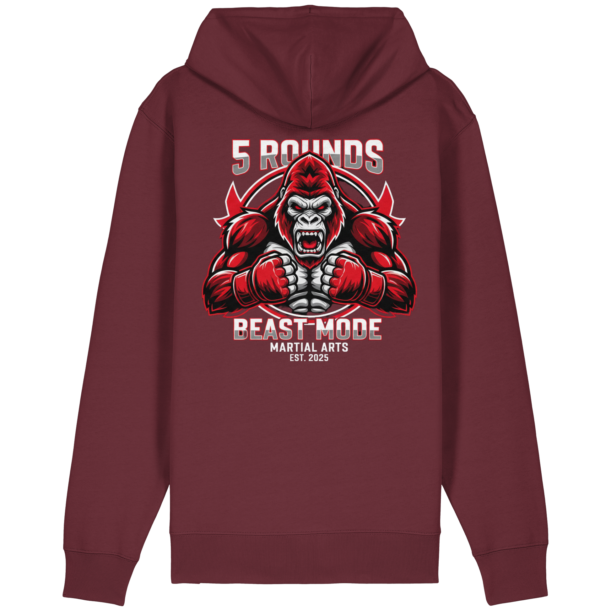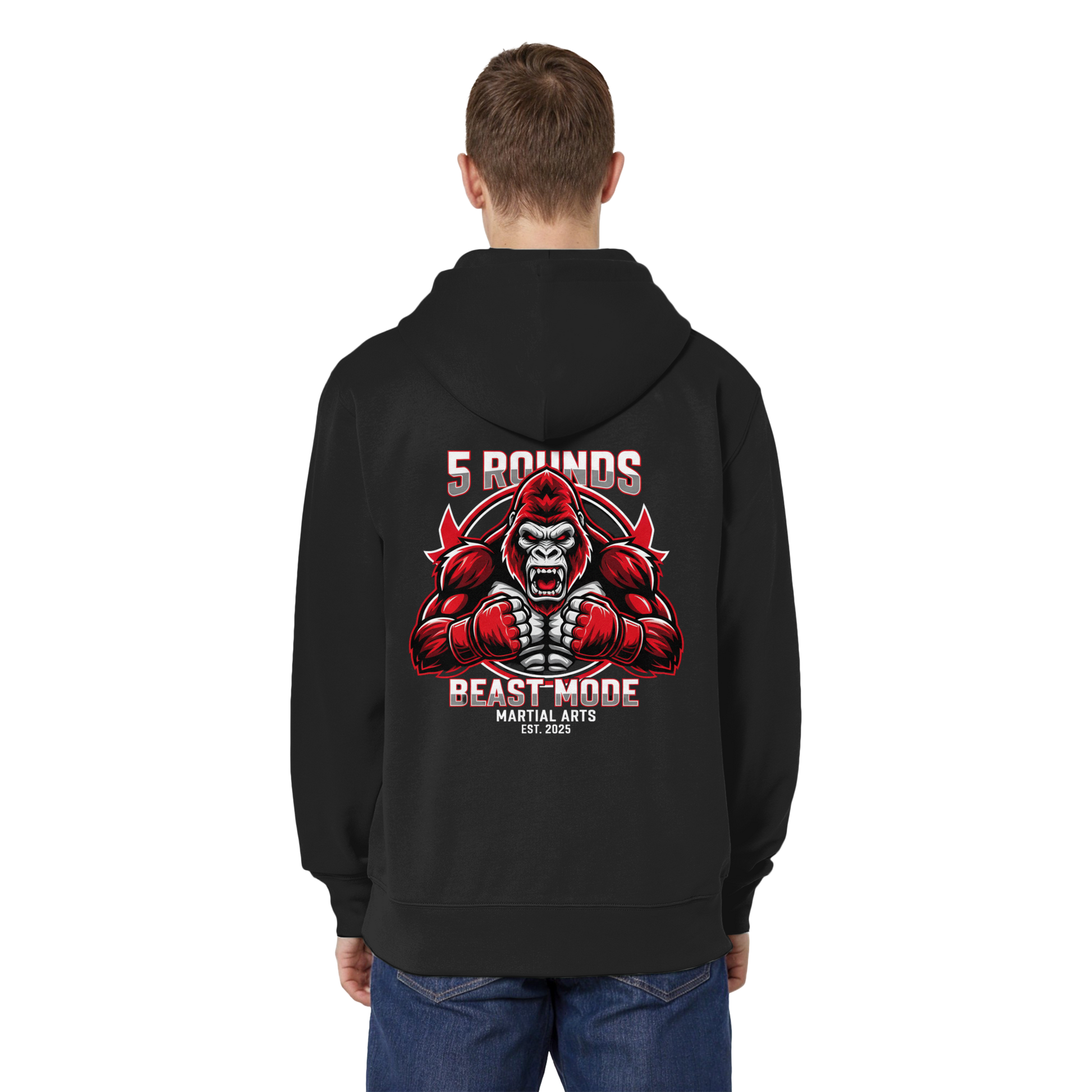 Premium MMA Zipper mit 5 ROUNDS Stick vorne und großem BEAST MODE Gorilla DTF-Druck hinten. Jedes Stück wird einzeln hergestellt – Lieferzeit 5-7 Tage.