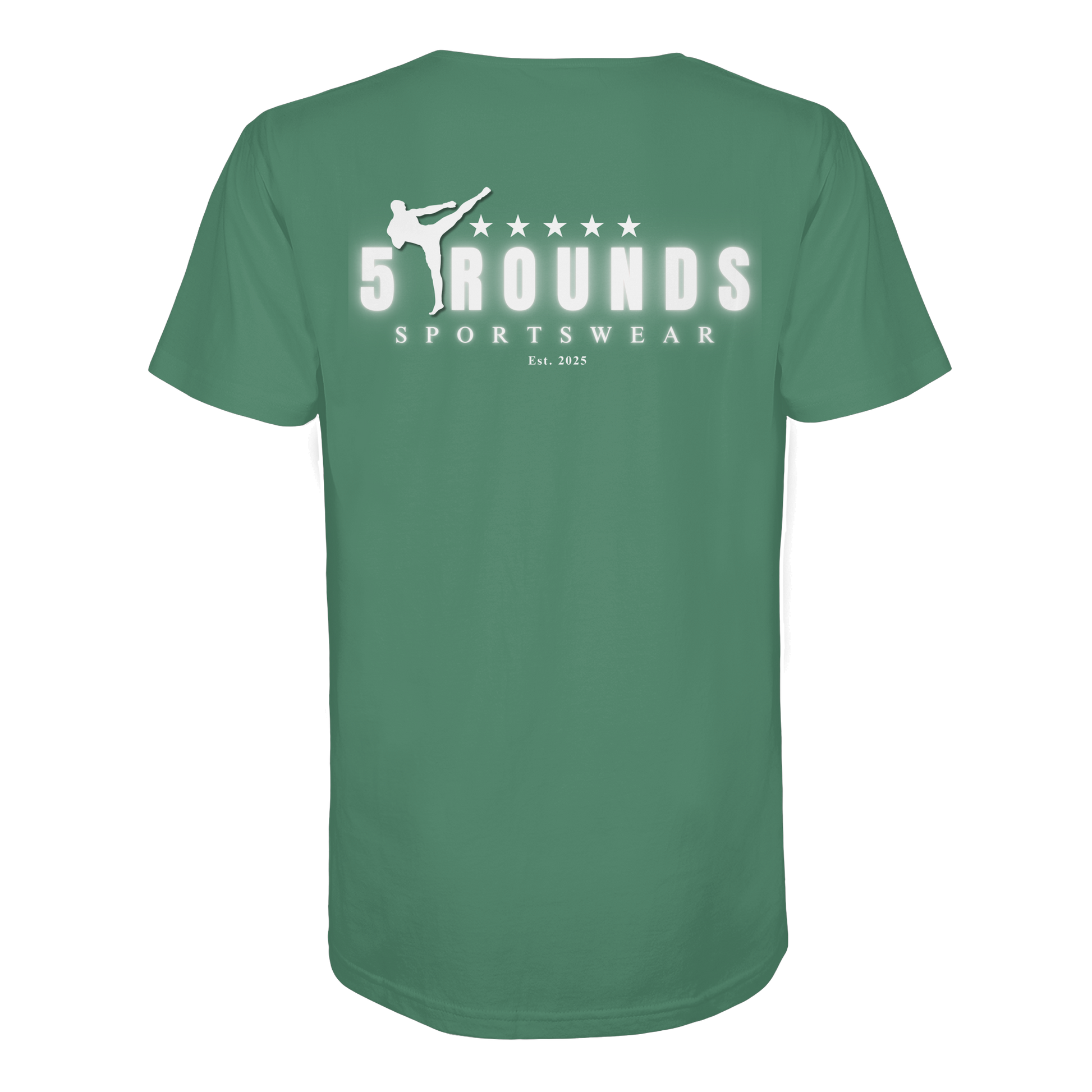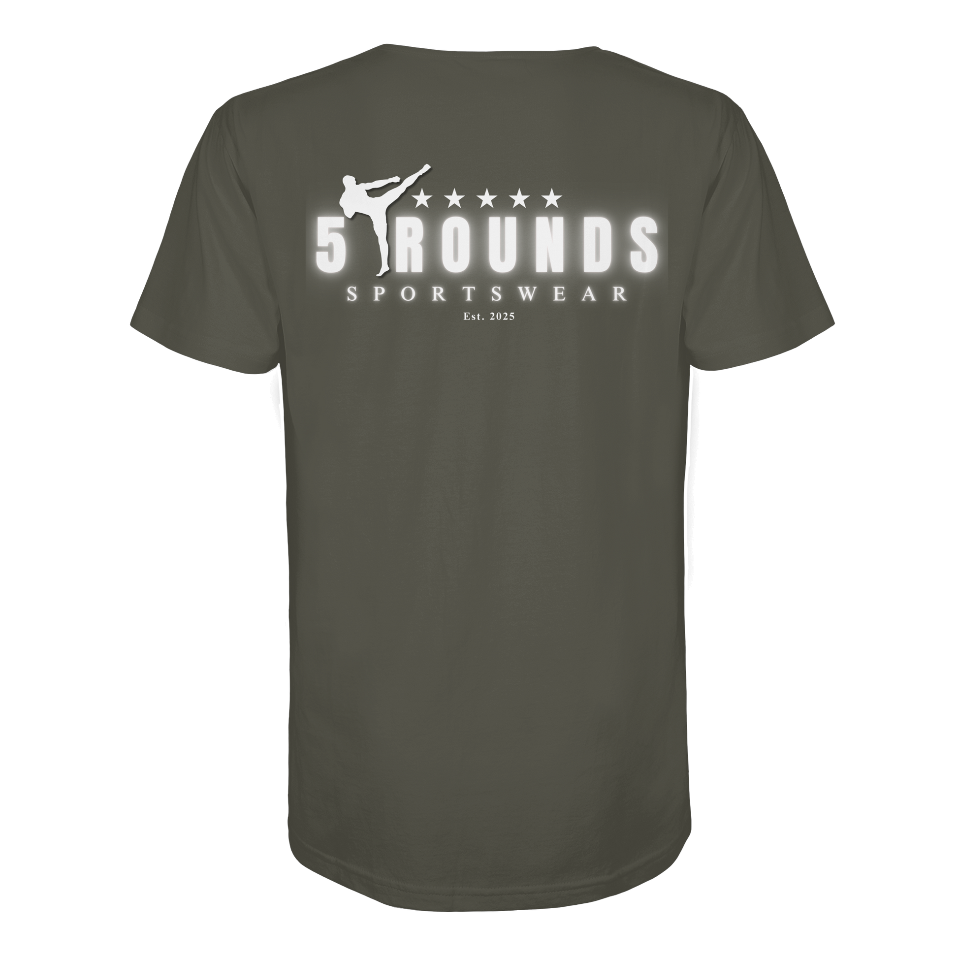 Erleben Sie den Spirit der Kämpfer mit dem 5 ROUNDS Logo Weiß - Organic Shirt. Perfekt für Sportler, die in jedem Kampf ihren Weg gehen. Hergestellt aus 100 % Bio-Baumwolle, bietet es unvergleichlichen Komfort und Stil.